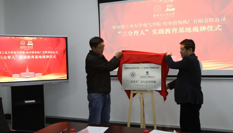 哈工大9999js金沙老品牌-哈尔滨电机厂有限责任公司 “三全育人”实践教育基地揭牌仪式圆满结束2020-12-29 14:28
