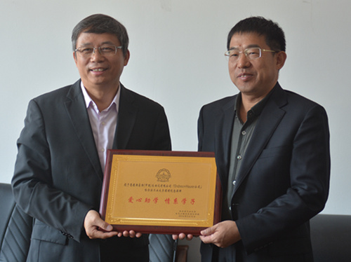 研讨会后,彭喜元为恩德斯豪斯公司颁发了捐赠纪念奖牌,胡瑞强带领恩德斯豪斯公司来宾参观了电机楼相关实验室。