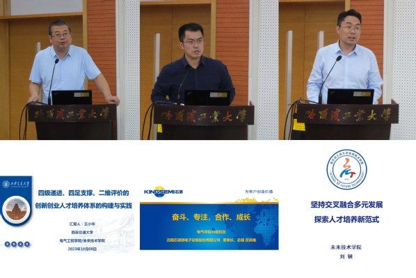 报告会上,与会专家领导就四类杰出人才培养目标畅谈举措、凝练成果、分享经验。构建人才培养体系,西安交通大学王小华教授分享“基础在教材,内涵在课堂,提高在交流,评价在学生”教学改革之路引起了学院教师共鸣;围绕自身成长创业经历,沈阳芯源微电子设备股份有限公司董事长、总裁宗润福研究员希望母校培养更多知行合一、兴趣驱动的杰出人才;聚焦强化顶层设计,研究生院培养处副处长李均教授指出,要在新时代教育强国建设中全面推进有组织的人才培养;梳理明晰底层逻辑,本科生院教学研究与质量管理处副处长甄玉宝教授剖析人才培养供给侧改革方案,表示要推动教育教学高质量内涵式发展;细化落实人才分类培养实践,未来技术学院党委书记兼常务副院长刘钢教授、卓越工程师学院党委书记兼常务副院长潘旭东教授从多维视角出发,探索以学科融合、产教融合推动四类人才网格化培养结构升级的可行路径。