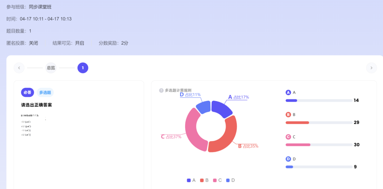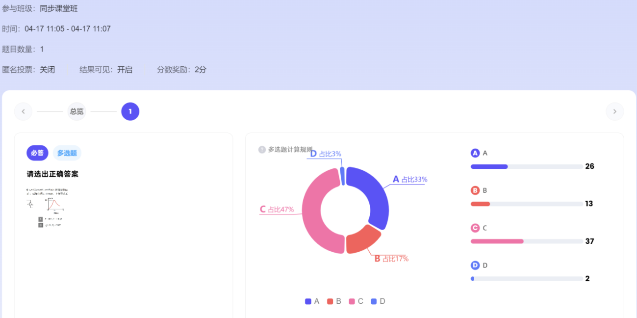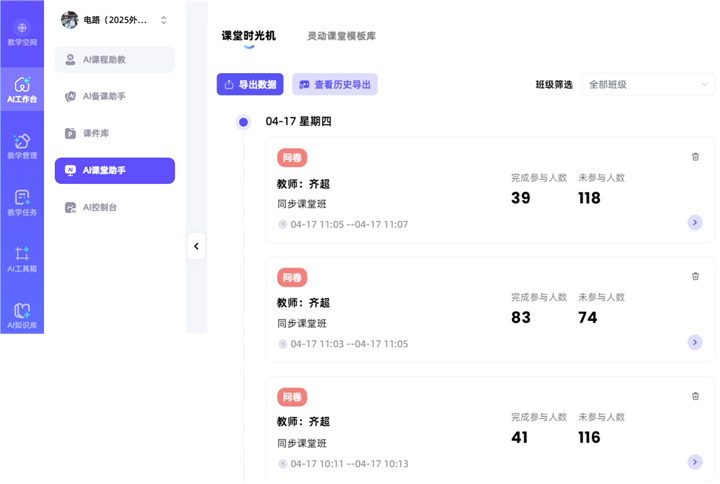 图7 AI工作台课堂时光机反馈学生作答情况