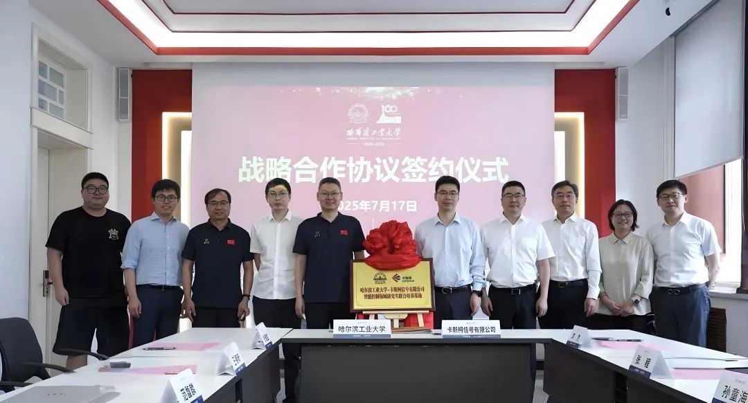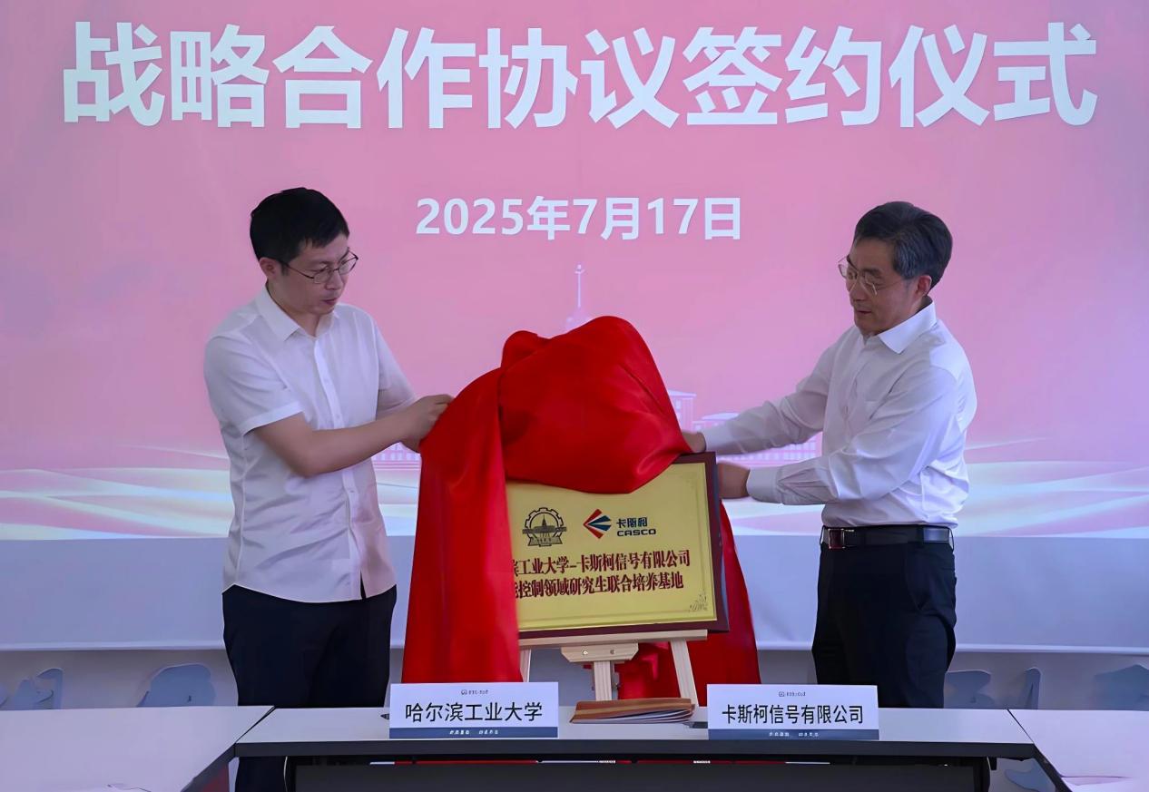 7月17日上午,“哈尔滨工业大学-卡斯柯信号有限公司智能控制领域研究生联合培养基地协议”签约暨揭牌仪式在电机楼30019会议室隆重举行。研究生院培养处副处长侯磊、我院院长叶雪荣、卡斯柯信号有限公司(以下简称“卡斯柯”)党委书记、董事长王印出席仪式,我院副院长于艳君主持仪式。